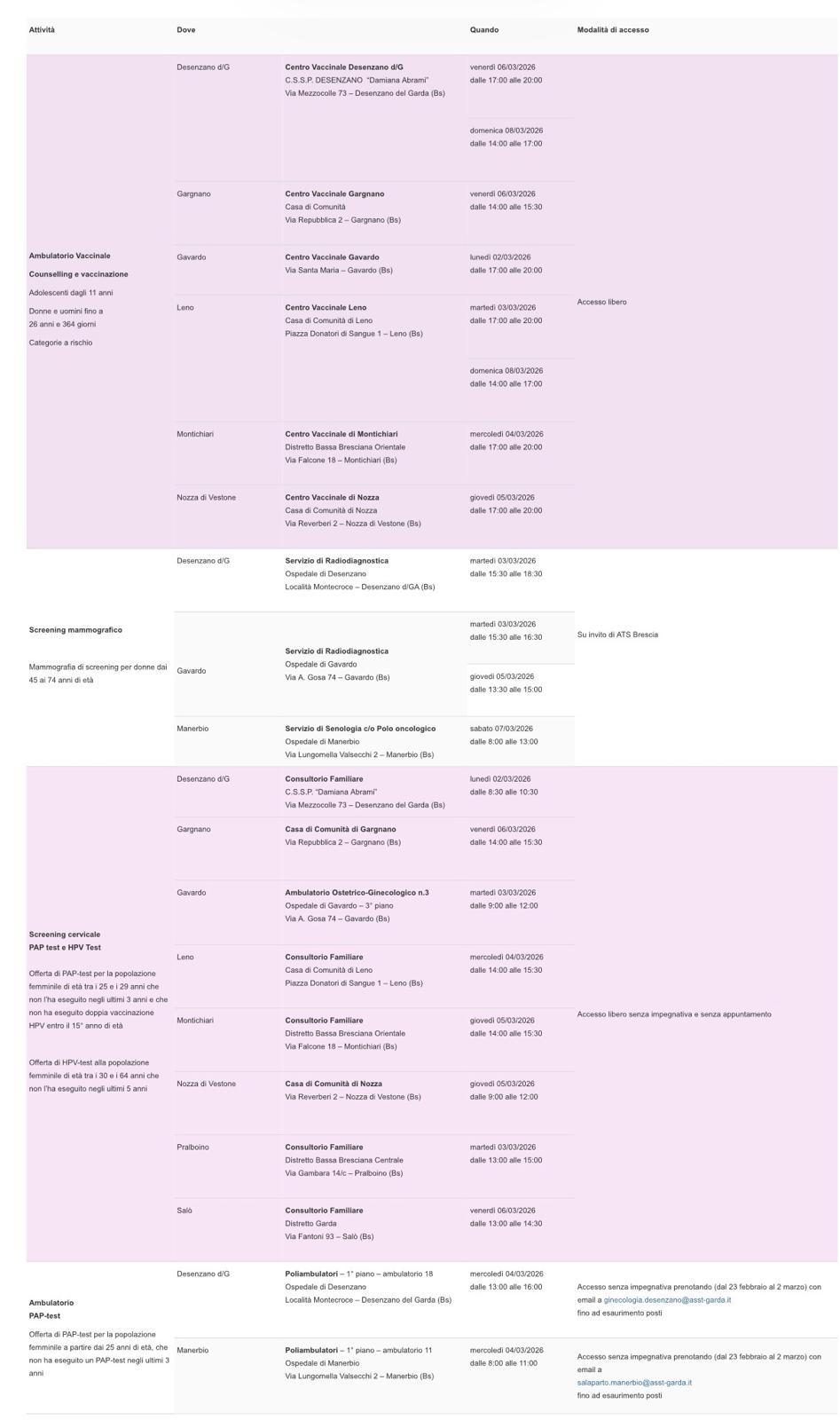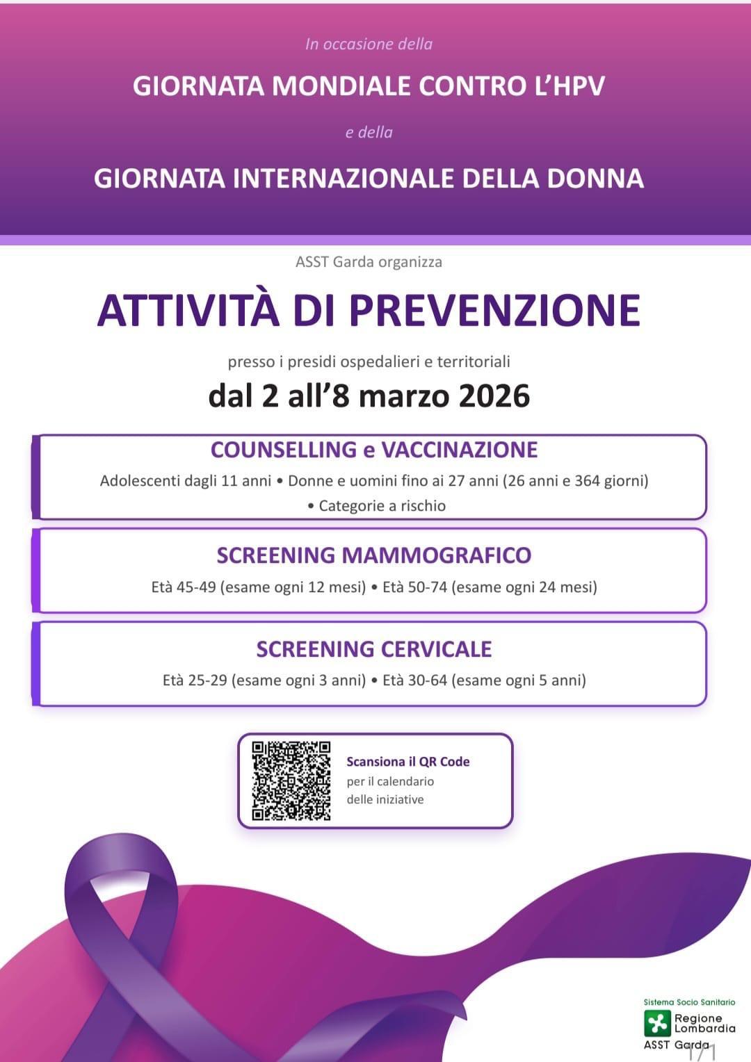 L'A.S.S.T. GARDA ORGANIZZA NELLE GIORNATE DEDICATE, ATTIVITA' DI PREVENZIONE INERENTI A:
