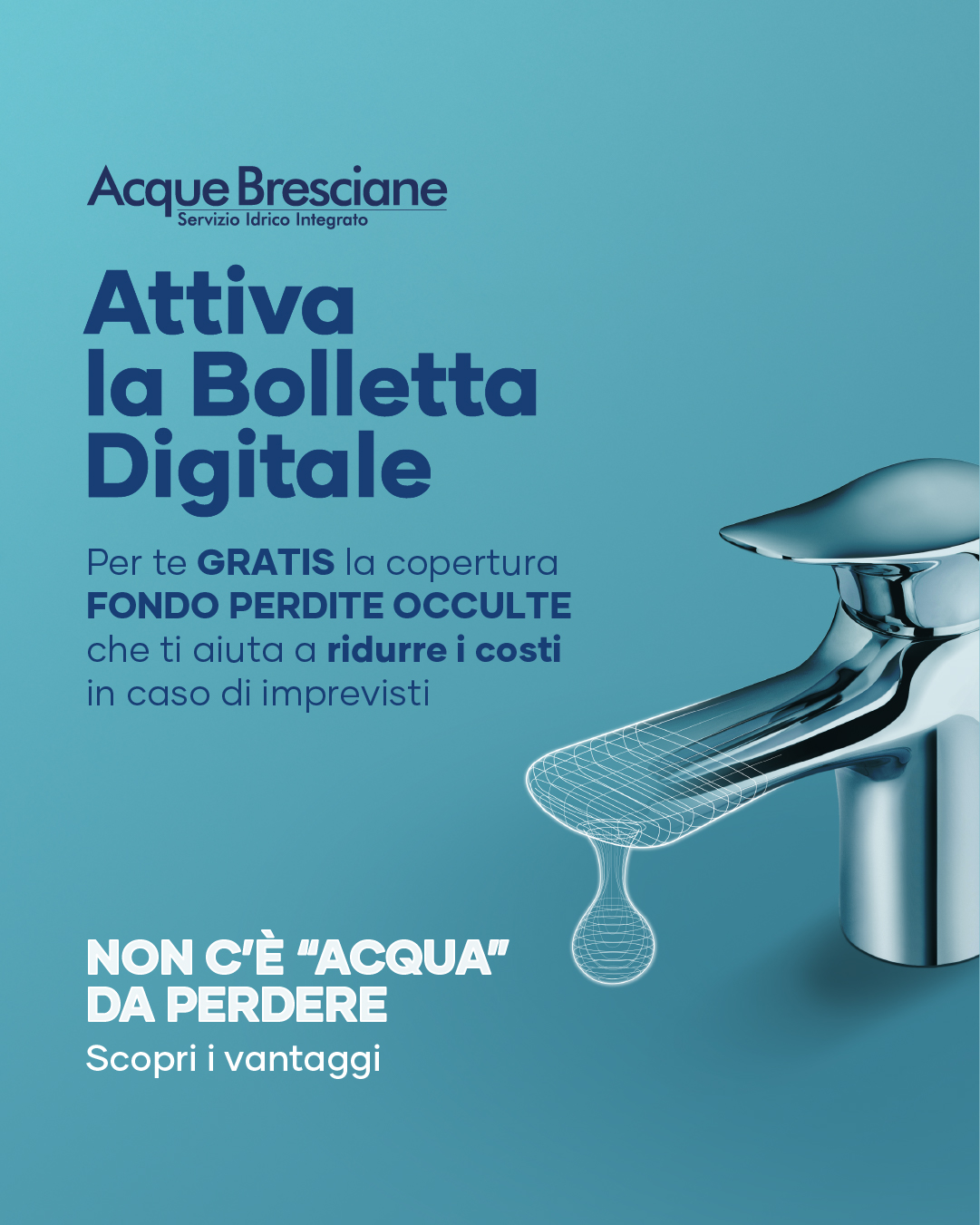 Acque Bresciane avvisa gli utenti circa la possibilità di attivare la bolletta digitale e avere gratuitamente il Fondo perdite occulte che integra e rafforza le tutele minime già previste dalla normativa in caso di perdite nella propria rete interna.